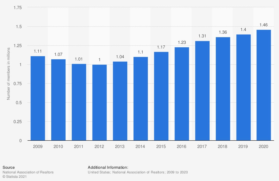 In 2020, the National Association of Realtors had more than 1.4 million members.